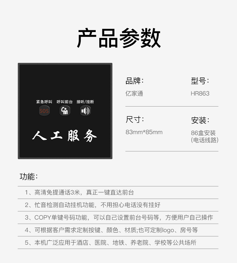HT863 86盒酒店电话